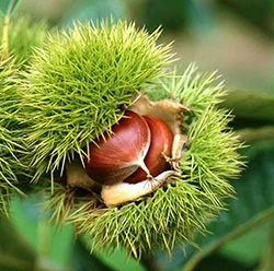 You may be thinking, "I've seen chestnuts. They are in those little spikey husks right?" Well.... Yes. But you probably are thinking of Horse Chestnuts. These are American Chestnuts. One you can eat, one you can NOT. American Chestnuts look like sea urchins in trees and there are three huge nuts to a pods. Horse Chestnuts are like spiky little ping pong balls with only one sad little nut.