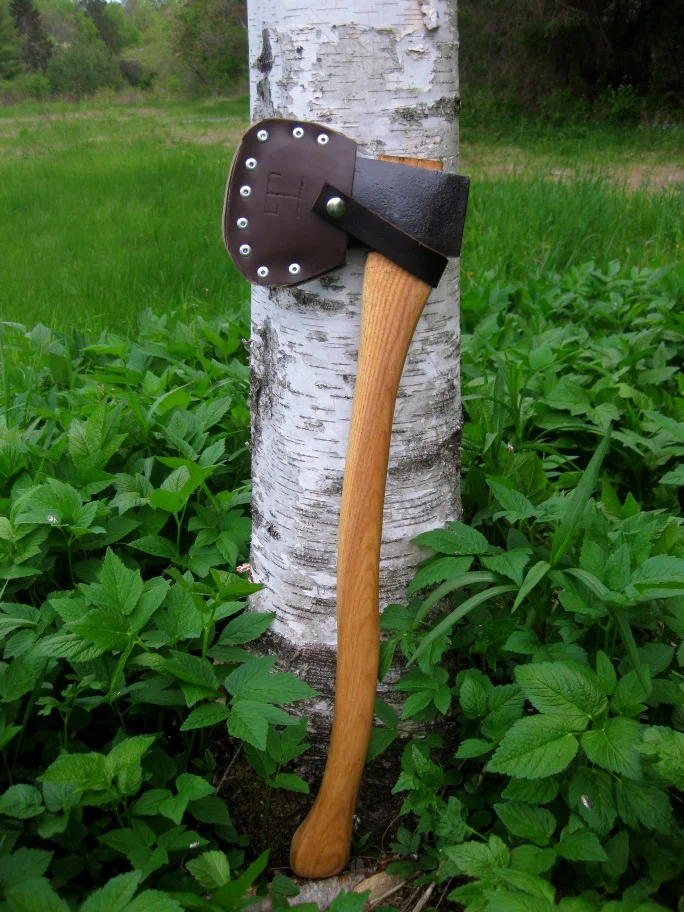 On a tiny side note, I built a new axe. Well, not the actual axe head. I don't have blacksmith skills...yet, but everything else I made. Turned out pretty nice. Its a small axe with only about a 20 inch handle. Much nicer to use and control that some giant felling axe. I've primarily used it to limb trees or hit felling wedges in. The handle was made from scratch from some nice ash blanks I got from my friend Steve's friend Rodney who runs Peavey Manufacturing Co. just down the road in Eddington, ME. They make all their peavey and axe handles from perfect quarter-sawn ash blanks and he was awesome to give us two blanks to carve out our own handles from! The leather was from the scrap grab-bags from the Hobby Lobby (not as exciting as the source of the wood). The actual axe head came from the Trash and Treasures barn just down the other road to Searsport, ME. Just a cool RAW antique & stuff barn. This was a slow project for a while, but it's finally done. Looks good, works good.